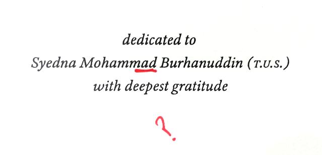 Their disregard goes to the extent that BT does not even spell Syedna Mohammed Burhanuddin’s RA name correctly, even when claiming to dedicate an entire publication to him. Surely, this cannot be a typo? (It’s not because this spelling is consistent in this publication and the one above.) Surely, she would be able to catch such a glaring mistake, especially when it’s the only name on the entire page? Or do they think they understand how to spell Moula’s RA name better than him?