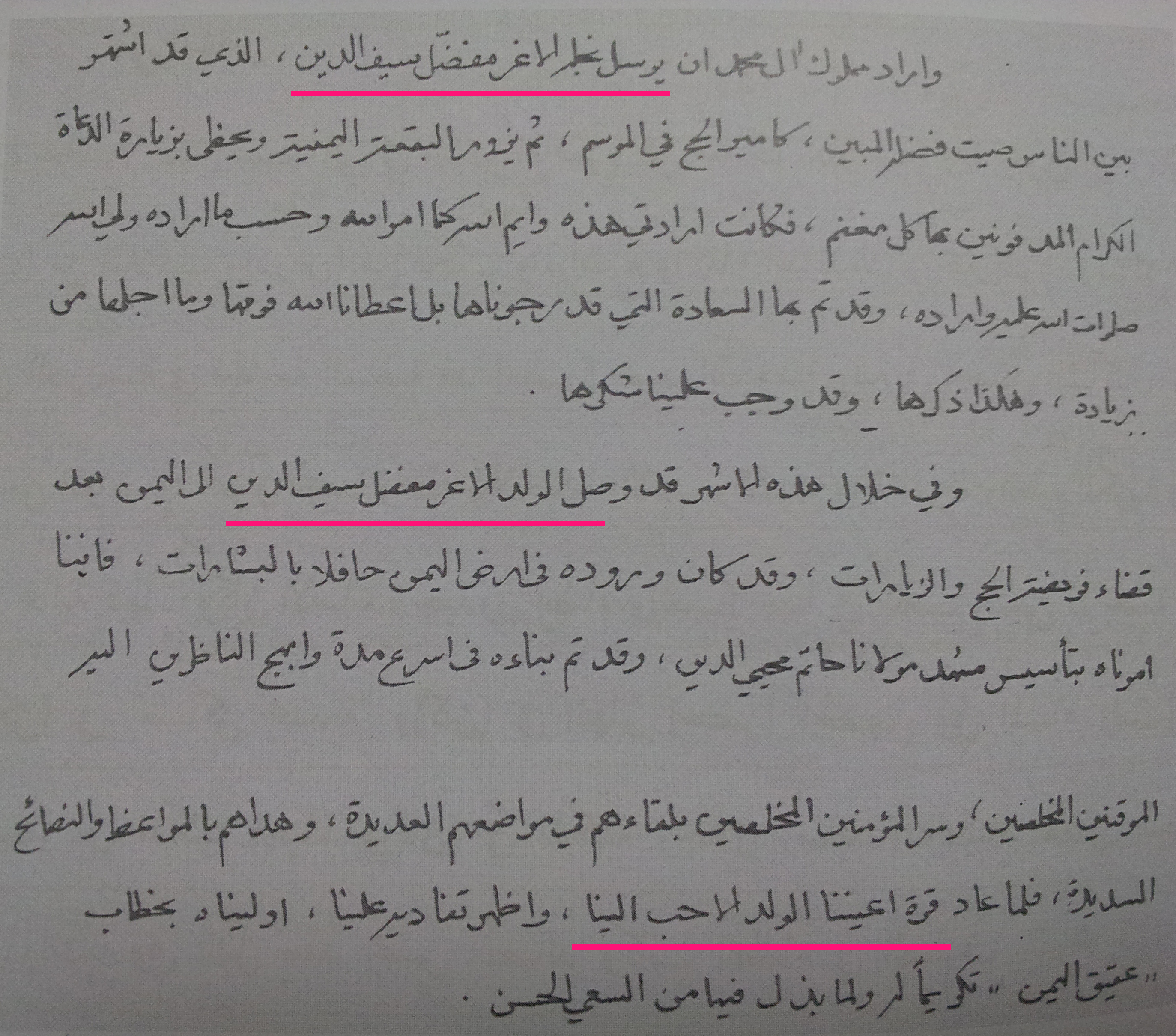 Furthermore, their text misleadingly plays on the words of this honorific as if it alludes to the illustrious book: Kanz al-Walad (The Son’s Treasure), and hints at Khuzaima being the recipient of its associated privilege. It is only a mansoos’s privilege to be privy to the secrets of this book, taught to him by his predecessor. However, does it seem appropriate that allusions to standings and privileges associated with this lofty book would be conveyed with the use of an honorific that is common to many in Syedna’s greater household? Reference to its privileges would not be expressed with an honorific, so commonly shared. A reference to it would be conveyed delicately and elegantly, reflecting the elegance and exclusivity of the book itself, befitting the privilege of the Dai’s Mansoos, Syedna Mufaddal Saifuddin TUS. Syedna Mohammed Burhanuddin states in his eid qaseedah shareefah 1432 H. (the year in which nass was publicly declared)