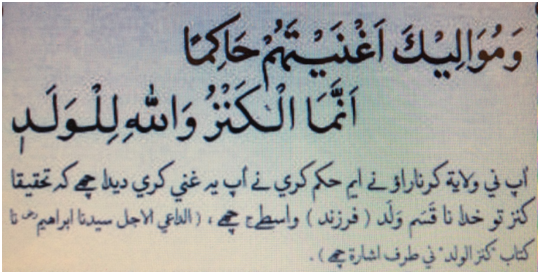 “Syedna Burhanuddin: “my beloved son”—Prefacing Syedna Qutbuddin’s name, Syedna Burhanuddin said three times over, “my beloved son.” The term “son” has great significance in the Dawoodi Bohra Fatimi-Tayyibi theology, for it denotes the relationship between a Dai and his successor; in the same way as a father produces and raises his son to take his place in this world, so the Dai prepares his successor to take his place in the world of religion. The kitab the second Dai Syedna Ibrahim wrote for his successor is named ‘kanzul walad’ (A son’s [walad] treasure). Why else would Syedna Burhanuddin call his brother his son, and that too three times?”